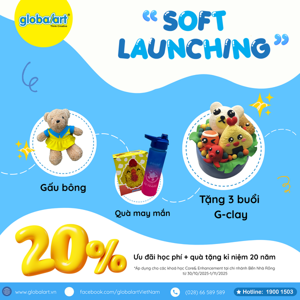 Từ ngày 30/10 – 1/11/2025, trung tâm Global Art Bến Nhà Rồng – chi nhánh mới nhất của hệ thống Global Art Việt Nam – chính thức ra mắt với chương trình ưu đãi và trải nghiệm miễn phí dành cho các bé yêu thích nghệ thuật.