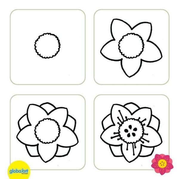 Những kiểu hoa này đều có hình dáng đơn giản, màu sắc nổi bật và rất dễ ứng dụng vào bài vẽ cho trẻ.