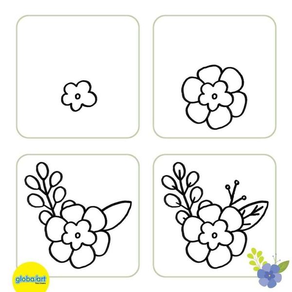 Từ các mẫu hoa trên, bé có thể sáng tạo theo nhiều bố cục khác nhau: